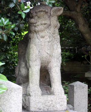 随神門前の狛犬 かなり茂みに入っていたので正面が撮れませんでした |